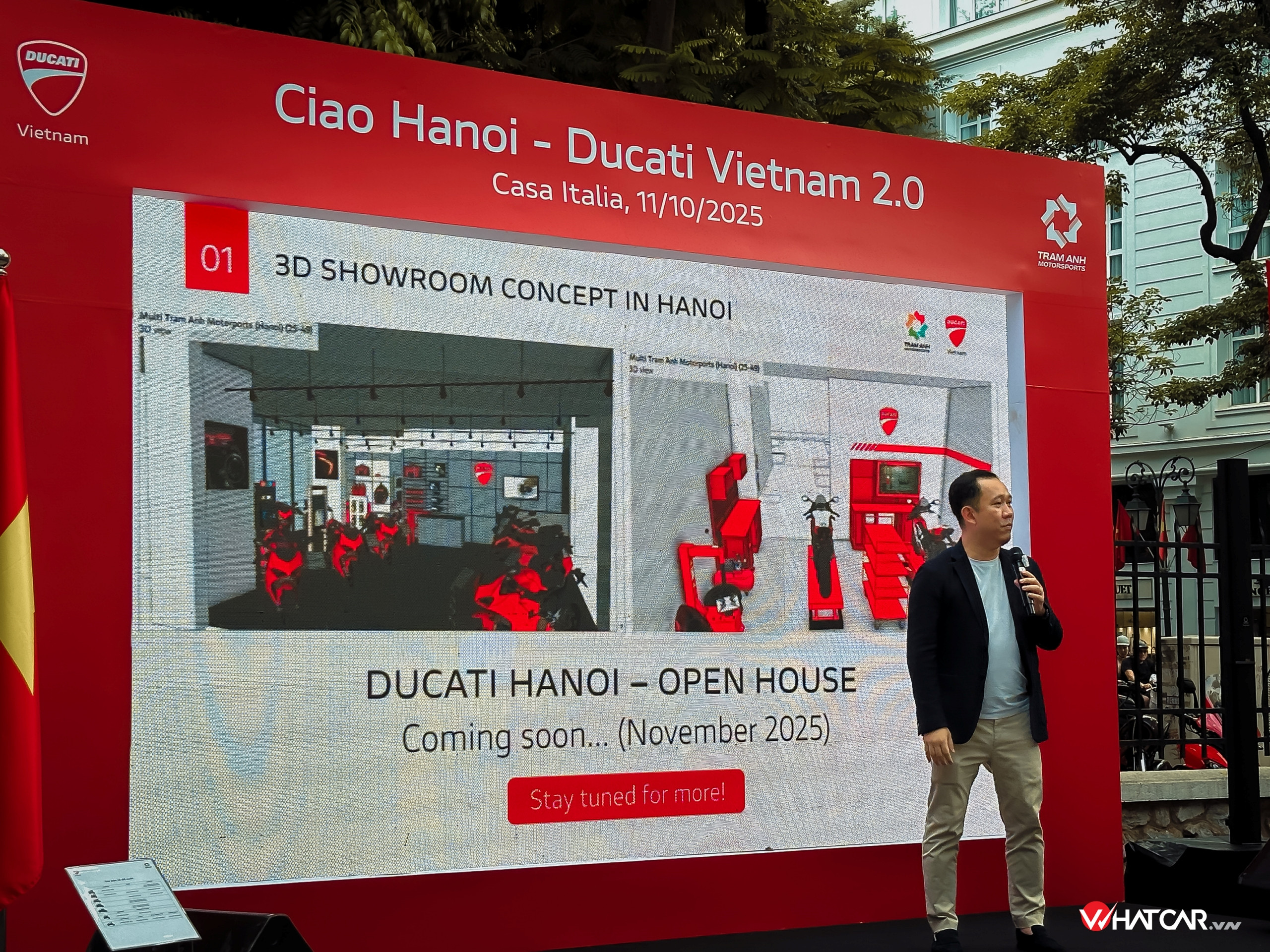 Đáng chú ý, Ducati và TAMS đang làm mới hình ảnh thương hiệu với hệ thống showroom phức hợp thể thao mô-tô độc quyền, bao gồm khu vực trưng bày xe, không gian trải nghiệm, dịch vụ hậu mãi và các hoạt động gắn kết cộng đồng. Showroom đầu tiên dự kiến hoạt động từ tháng 11 sắp tới. TAMS cho biết cũng sẽ tổ chức một chuỗi sự kiện độc quyền như Ducati Riding Experience (DRE), Ducati Track Days, các chuyến tour cao cấp, trải nghiệm lái thử và hội thảo kỹ thuật cho khách hàng.