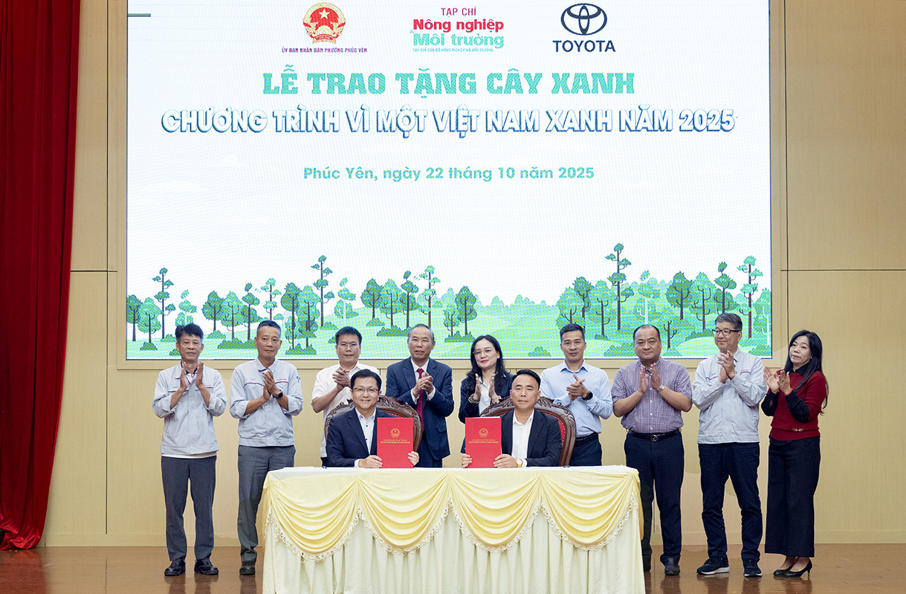 Toyota Việt Nam (TMV) phối hợp cùng Tạp chí Nông nghiệp và Môi trường, Bộ Nông nghiệp và Môi trường tổ chức Lễ trao tặng cây xanh trong khuôn khổ chương trình “Vì một Việt Nam xanh 2025” tại Ủy ban nhân dân phường Phúc Yên, tỉnh Phú Thọ - nơi đặt trụ sở chính của TMV.