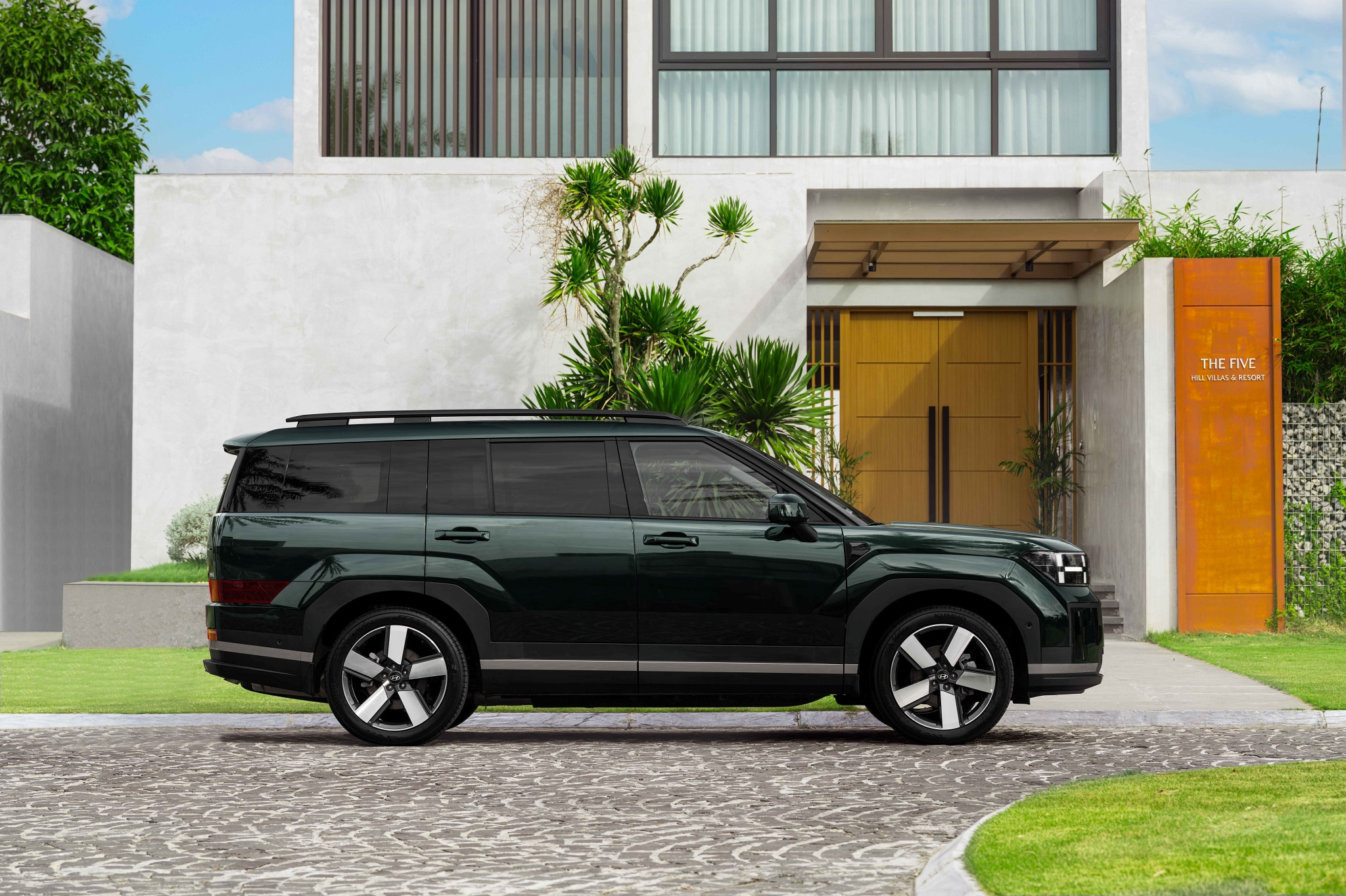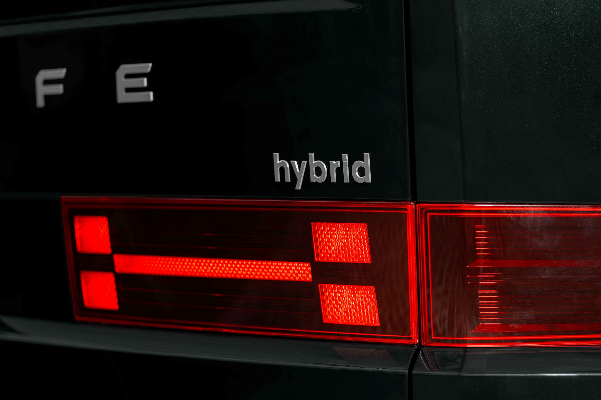 Nếu không có cơ hội mở nắp ca-pô, người nhìn vẫn có thể nhận ra biến thể “lai” của Hyundai Santa Fe thông qua logo được đính trên cửa hậu và màu ngoại thất xanh ngọc lục bảo độc quyền. Mặt ca-lăng đóng/mở tự động giúp hạn chế hệ số cản gió. La-zăng 20 inch hoành tráng hơn hẳn loại 18 inch kín kẽ trên xe ở Thái Lan.