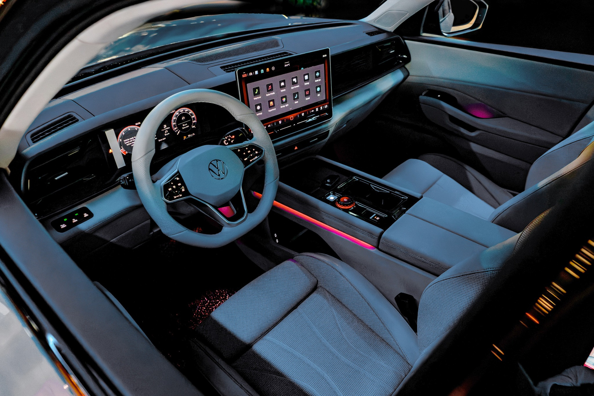 Nội thất thưa thớt nút vật lý, người dùng phải điều khiển hầu hết các hệ thống thông qua màn hình cảm ứng 15 inch kết nối Apple CarPlay/Android Auto không dây. Bảng đồng hồ 10,3 inch được hạ thấp, tạo ra táp-lô phẳng phiu hơn hẳn các xe Teramont trước đây.
