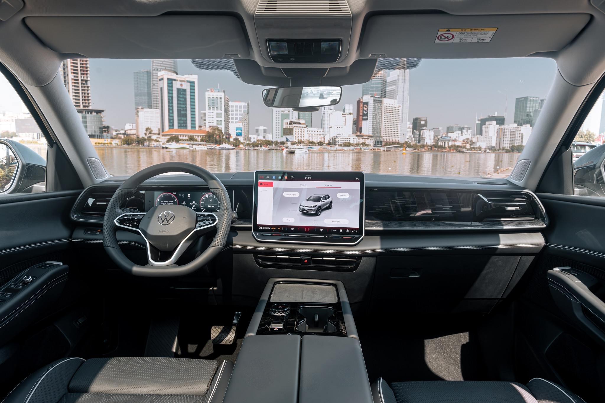 Bảng đồng hồ 10,3 inch được hạ thấp, tạo ra tầm quan sát tốt hơn các xe Teramont khác. Cần số điện tử được dời ra phía sau vô-lăng.