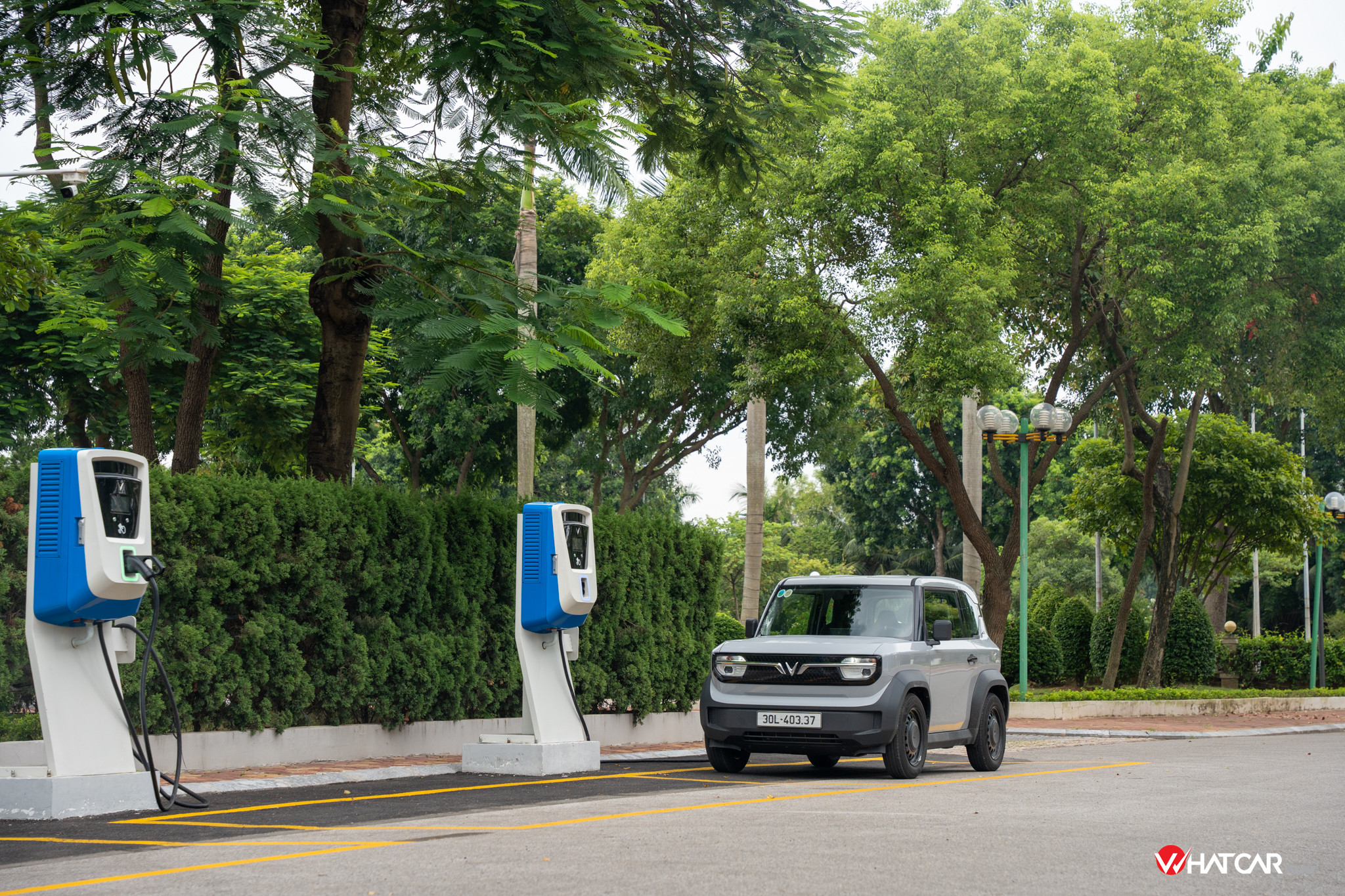 Mẫu ô tô điện cỡ nhỏ hiện có hai phiên bản Eco (302 triệu đồng) và Plus (315 triệu đồng). Xe mang kiểu dáng vuông vức với 3 cửa và nhiều mảng ốp nhựa đen sần to bản, khoảng sáng gầm lên tới 175mm.